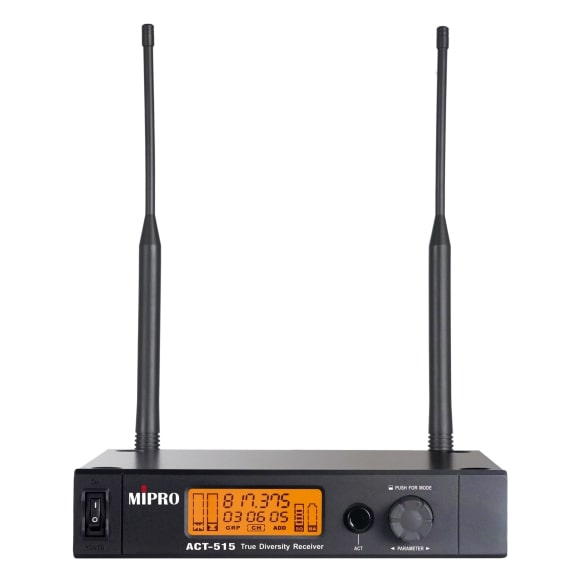 Mipro ACT-515 är en 1-kanals trådlös mottagare (narrowband) i ett halvrack-format, men kan 19 tum rackmonteras med rackadaptern FB-71 (tillbehör). Upp till 16st valbara frekvenser: