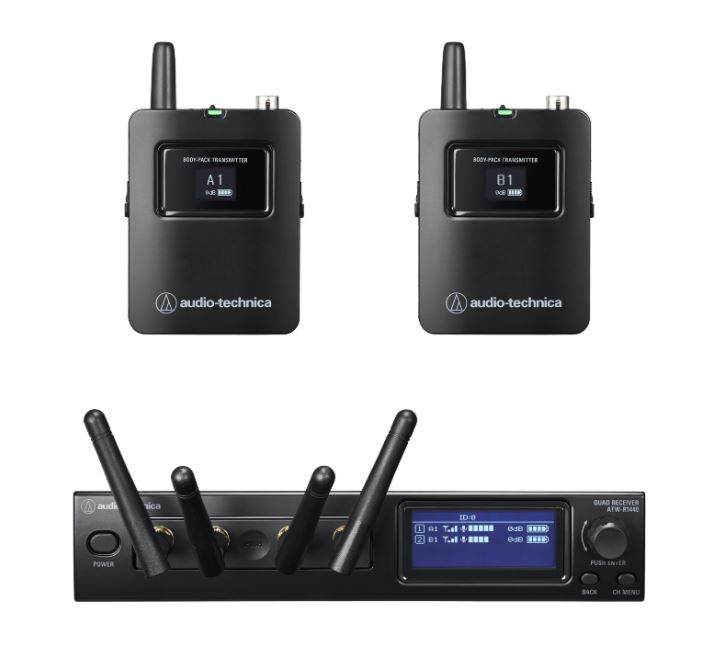 ATW-1421 är ett komplett mikrofonsystem med en ATW-R1440 4-kanals mottagare och två ATW-T1401 ficksändare.