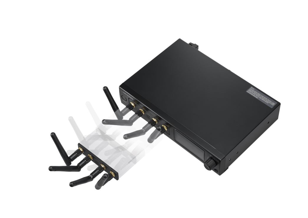 - Antenner kan dockas i chassit eller monteras på distans (upp till 328 meter bort) via Ethernet-kabel