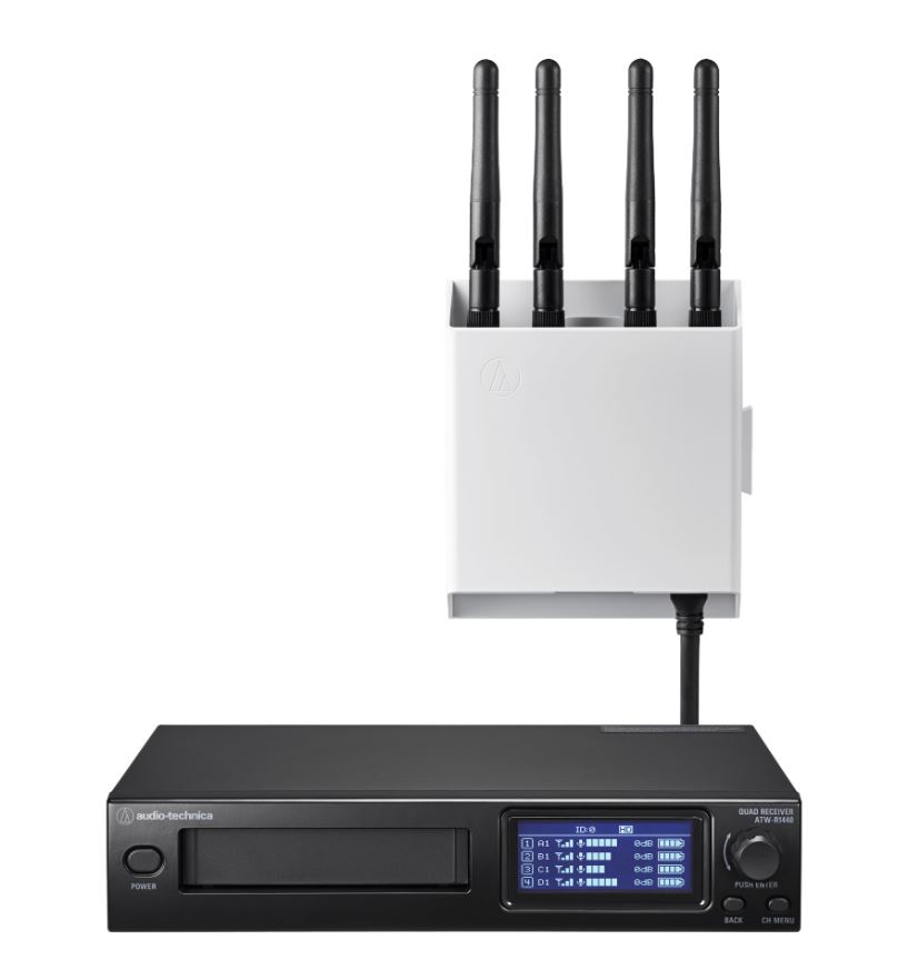 Systemets mottagare (ATW-R1440) kan ta emot upp till fyra sändare och gör installationen till en barnlek. Mottagaren, antennpaketet, kan monteras i antingen i teknikrack eller flyttas ut i rummet (upp till 328 meter bort via Ethernet-kabel). Väggfäste medföljer: Detta öppnar upp möjligheter att samla alla trådlösa mottagare i en större installtion med multipla rum, i ett centralt teknikrack på ett helt nytt sätt, servicevänligt och elegant.