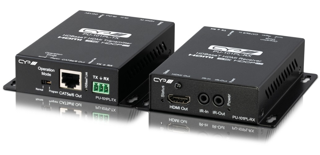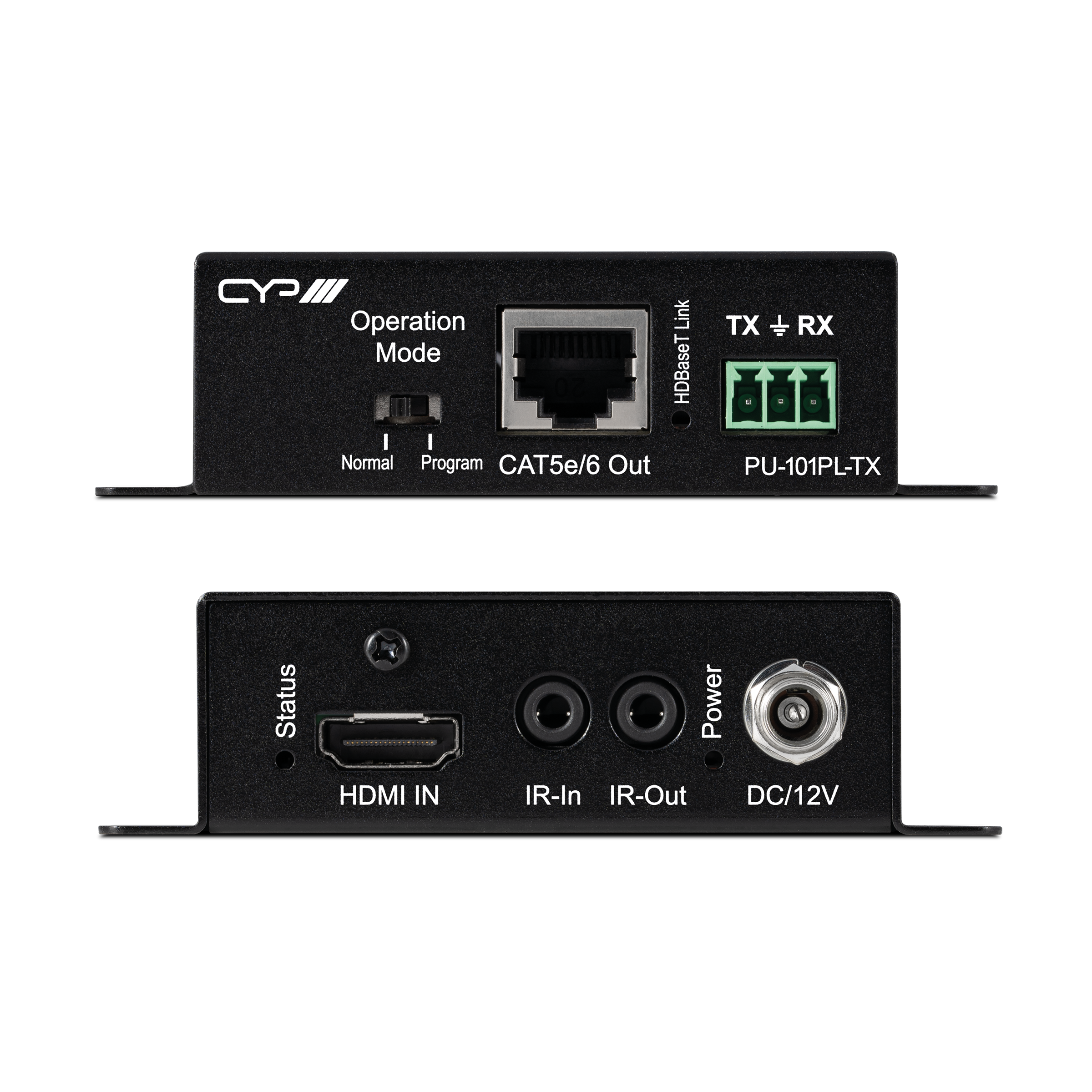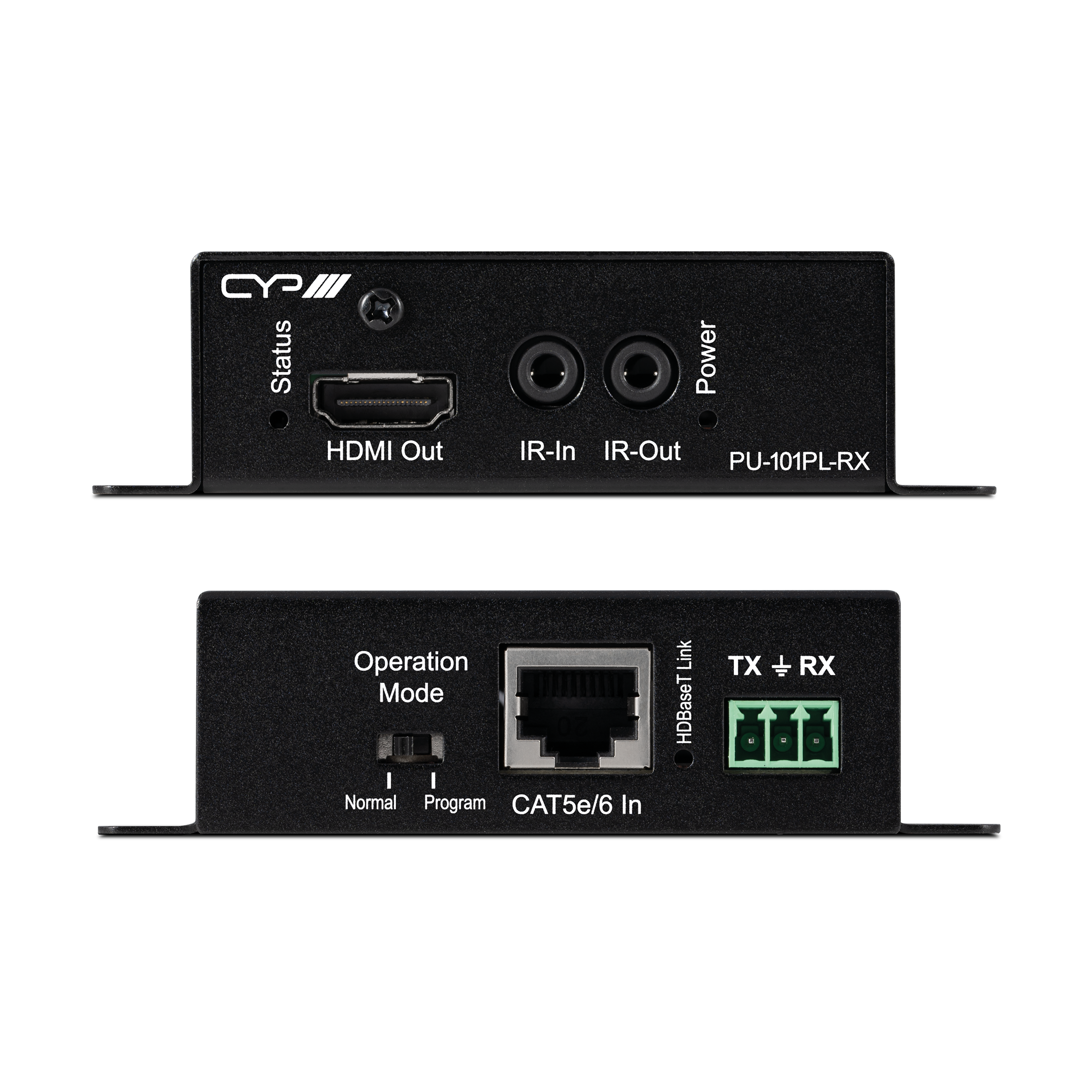 PU-101PL-KIT är ett extender-paket (sändare + mottagare) för att skicka okomprimerad HDMI, dubbelriktad IR-, RS-232- och PoC, upp till 70 meter vid 1080p upplösning eller 40 meter vid 4K upplösning. Med PoC-funktion (power over cable) behöver endast den ena enheten förses med ström.