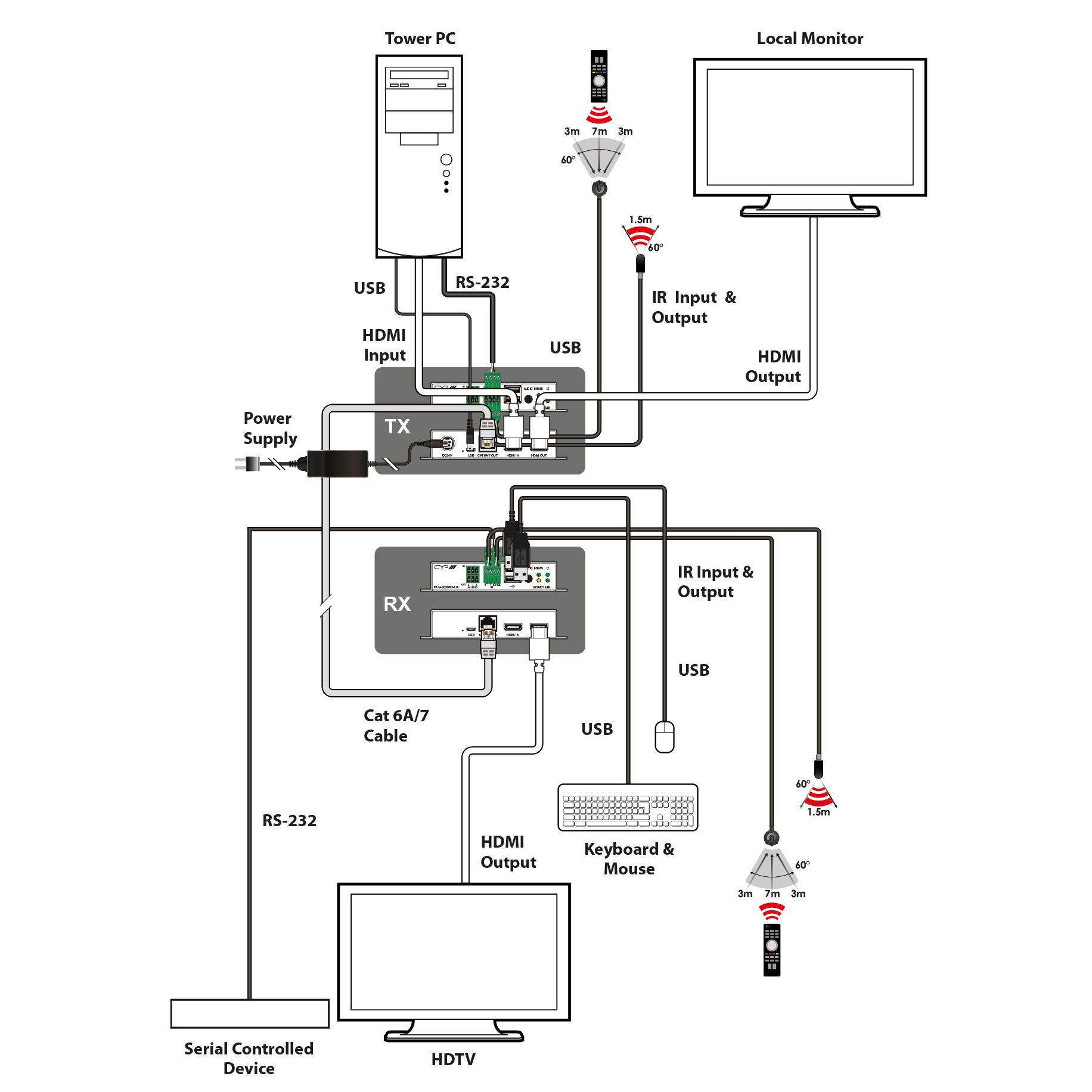 - Local HDMI output (on TX)