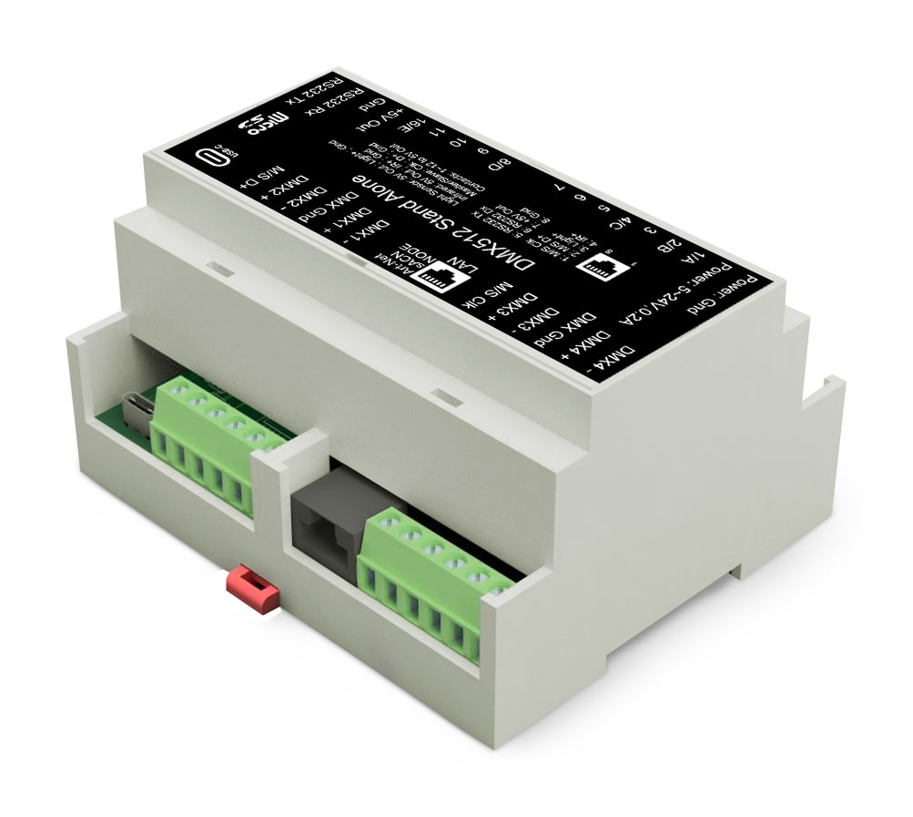DIN-E 2048 kan sedan köras helt fristående och styra upp till 4 DMX-universum (2048 kanaler). I fristående läge kan upp till 255 scener triggas via LAN, RS-232 (från ett styrsystem) eller också via 12 st trigger-portar (slutningar). Man kan trigga "Start/Stopp scen", "välj Zon", "Dimmer", "Speed", "Black out", etc. Dessutom har DIN-E 2048 en intern klocka som möjliggör styrning enligt en förutbestämd schemaläggning (År / Månad / Dag / Klockslag).