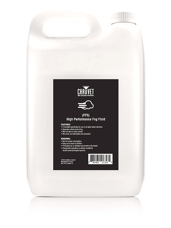 Chauvet FF5 är en rökvätska som ger en tjock, mer kvarhängande rök och anpassad för vattenbaserade rökmaskiner.