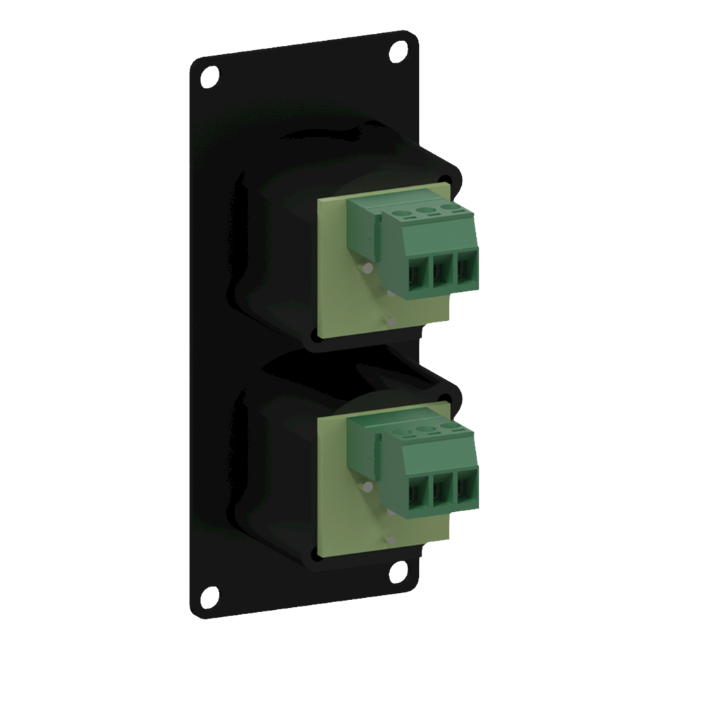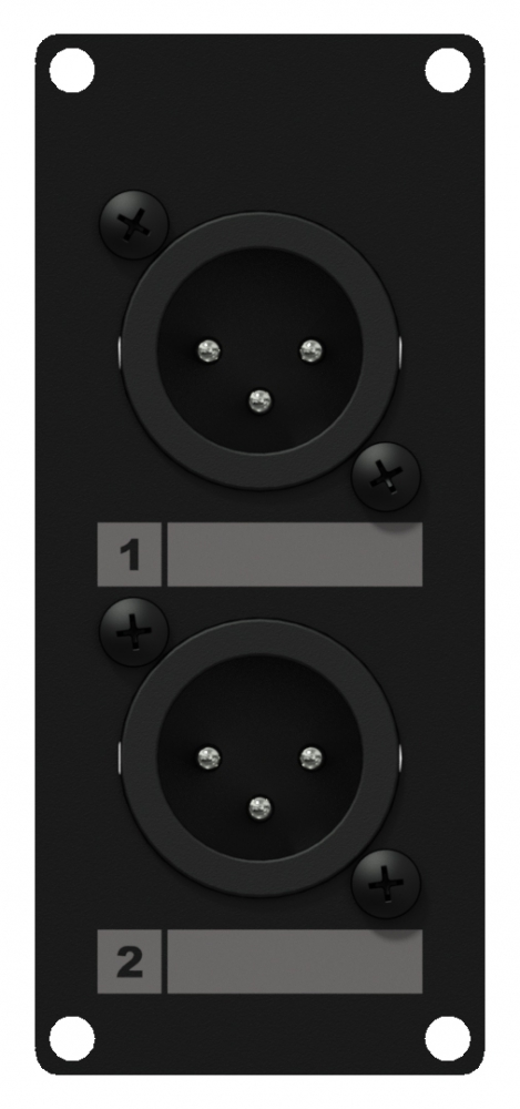 CASY126/B kontaktpanel med två monterade Neutrik XLR hanar till 3-pin plintkontakt (Euroblock), för Caymons modulsystem CASY (1 plats).
