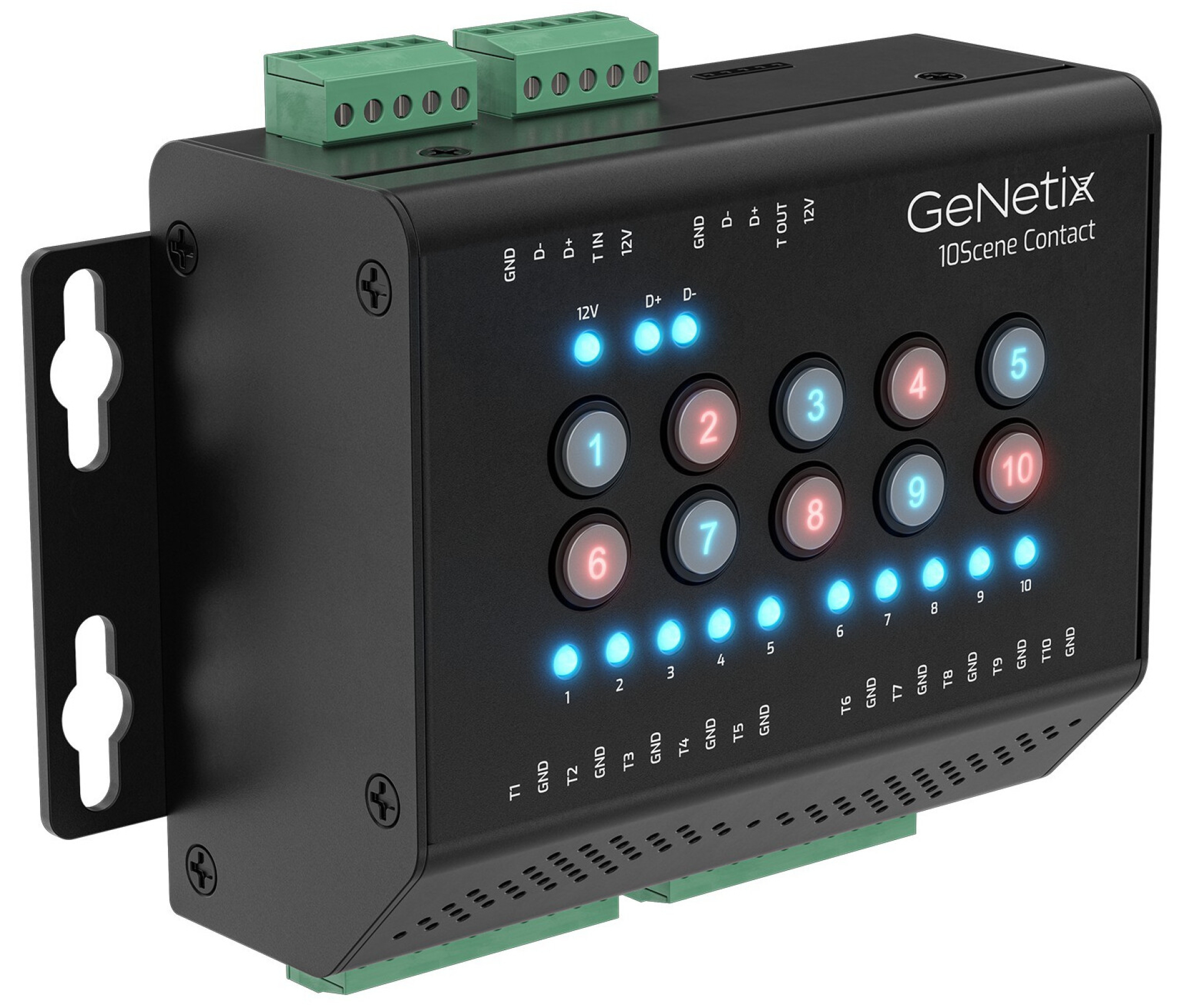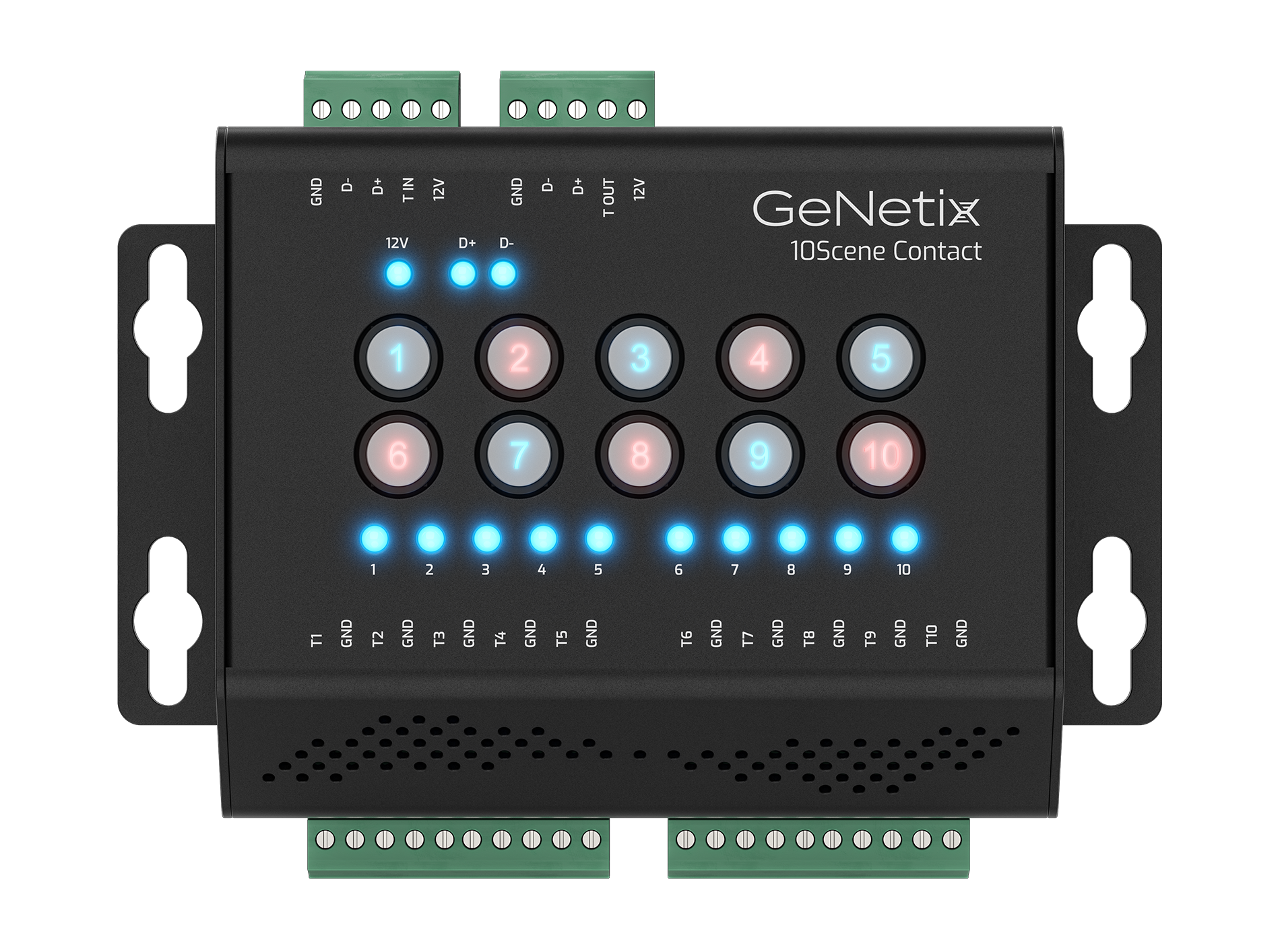 GeNetix 10Scene Contact är specifikt en extern trigger-enhet med 10st trigg-ingångar, för att trigga scener från MagicQ och QuickQ-enheterna, samt trigga scener från GeNetix GN5- och GN10-noder.