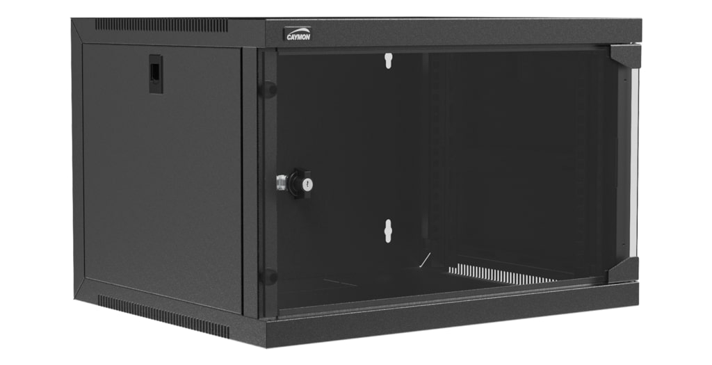 Caymon EPR-serien är budgetvänliga 19 tum rackskåp i metall för fast vägginstallation, med rackskenor monterade i både fram- och bakkant.