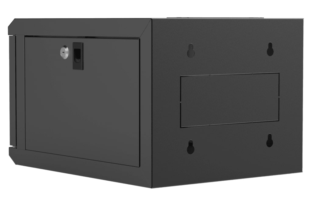 Den låsbara frontdörren har härdat glas och är omhängningsbar. Låsbara serviceluckor på varje sida. NPR404/B är ventilerad i toppen, och förberedd för fläkt. 1,5mm kallvalsad stålram med 1,2mm metall i övrigt. Svart utförande (RAL9004) .