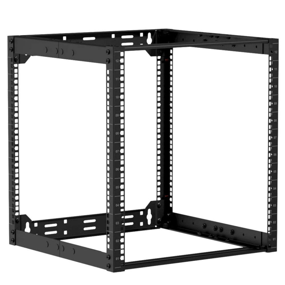 Konstruktionen är robust med 2mm godstjocklek i ramverket, rackskenor anpassade för korgmutter, svart utförande (RAL9004). Levereras omonterad och monteras ihop av en person på kort tid. Rackstativet harmoniserar med ANSI / EIA RS-310D, DIN41491 och IEC 60297 standard.