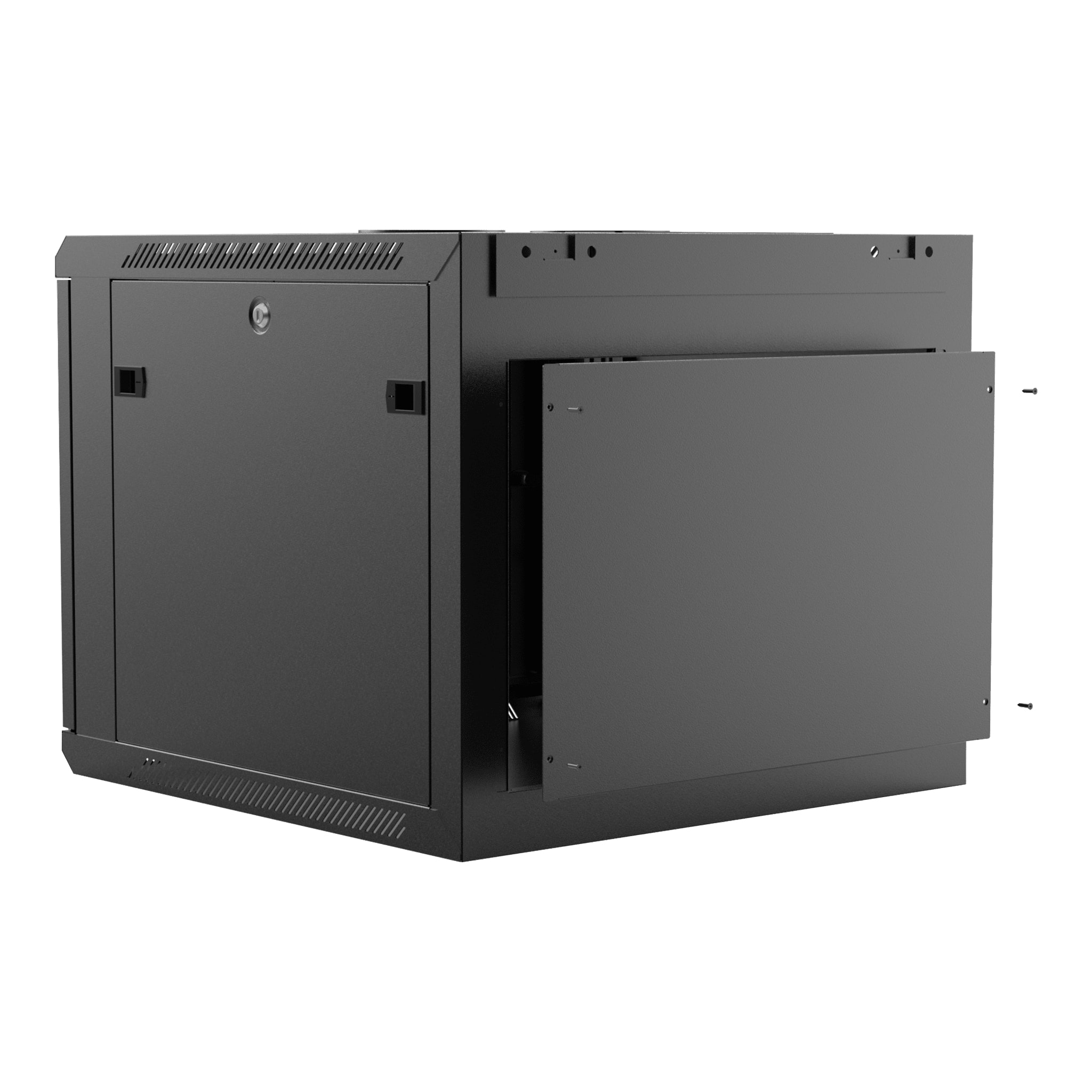 Caymon WPR609R/B är ett 19” rackskåp i metall (9HE) för fast vägginstallation med separat fäste. Uppmärkta rackskenor monterade i både fram- och bakkant, kallvalsat stål med 1,5mm godstjocklek i ramen och 1,2mm godstjocklek för metallpaneler. Rackskenorna är justerbara i djupled.