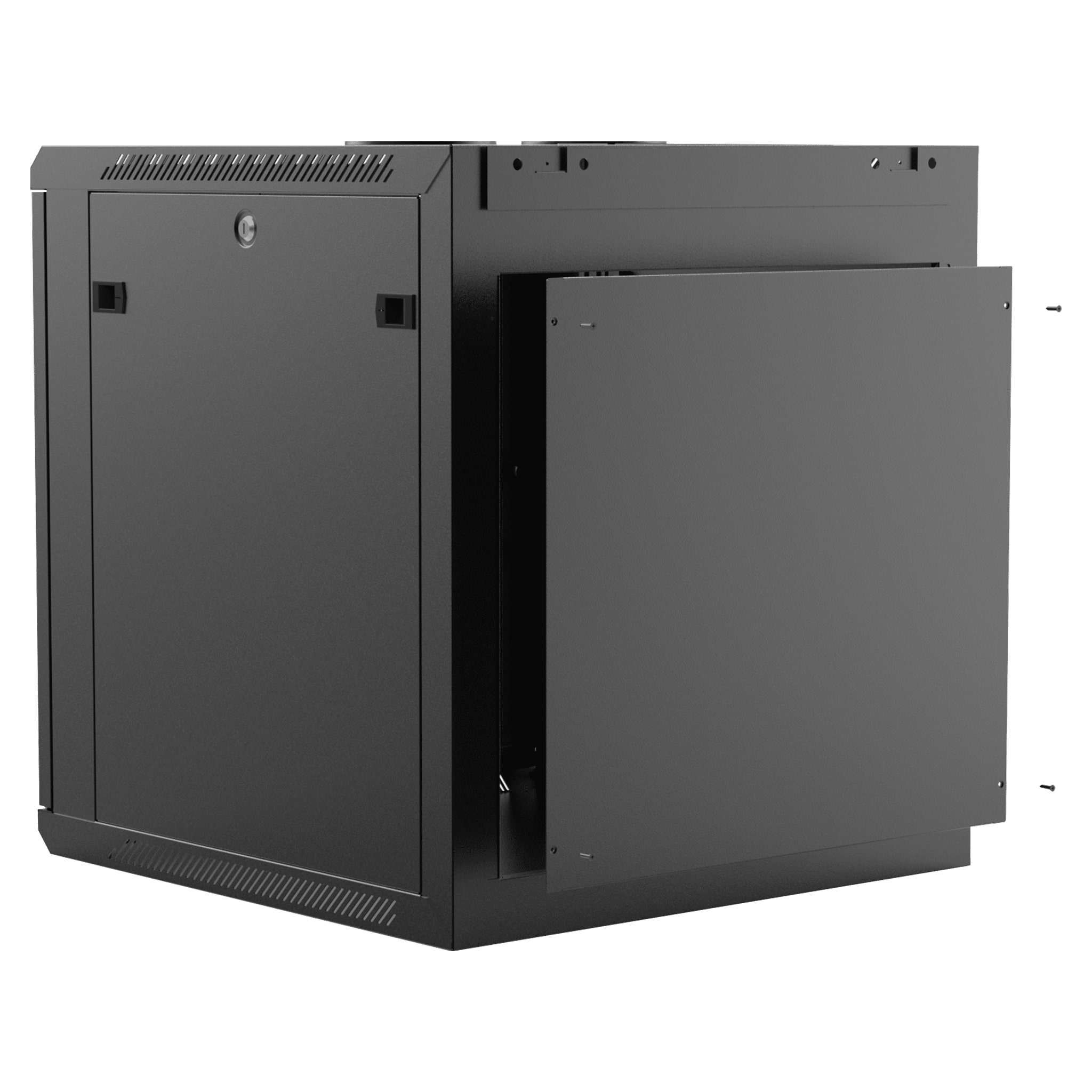 Levereras monterad inklusive rökfärgad glasdörr, som är låsbar. WPR612R/B har ett monteringsdjup på 560mm med plats för kablage. Levereras med ett par stödskenor monterade, rackskruv/korgmutter (10-pack) samt 6st nycklar.