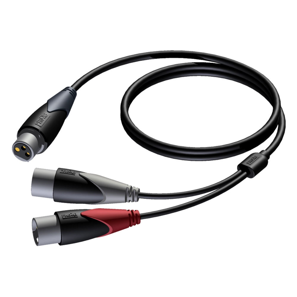 Procab CLA735 är ett 1,5m balanserat signalkablage, 1 x XLR hona - 2 x XLR hane. Signalkabeln är i sk. fig-8 utförande med två signalledare parallellt.