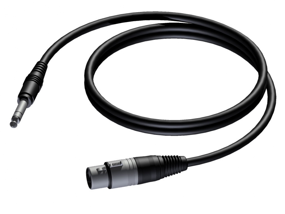 Balanserad och väl skärmad signalkabel (Procab MC104) med XLR hona - 6,3mm tele hane.1,5m längd.