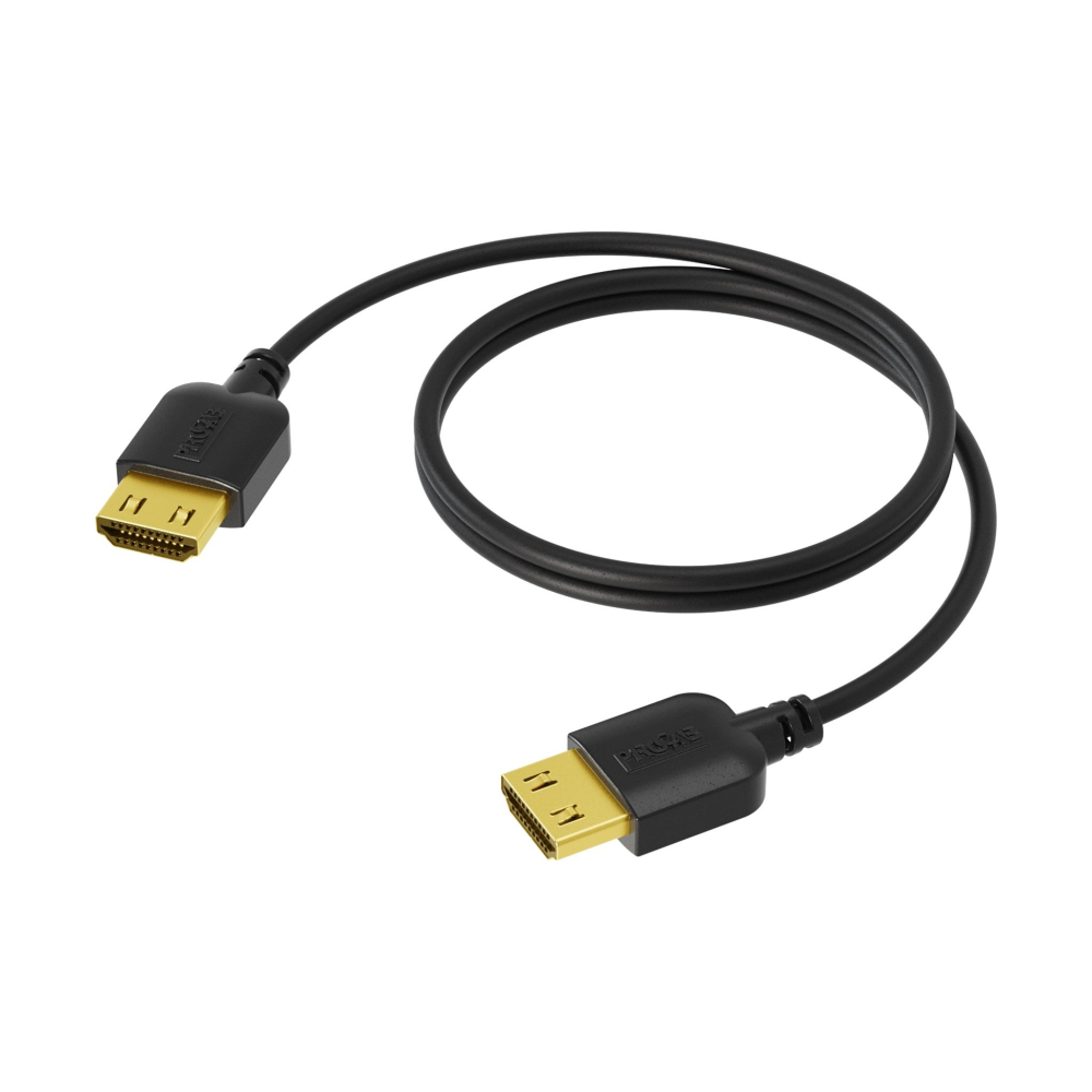Procab CSV210B-modellen är en serie supertunna (3,8mm) HDMI-kablar: 2.0-kompatibla, kan hantera en bandbredd på upp till 18Gbps och upplösningar på upp till 4K vid 60Hz 4:4:4. Guldplätterade Semi-Lock funktion i kontakterna, för att sitta fast ordentligt / öka utdragskraften för kontakten.