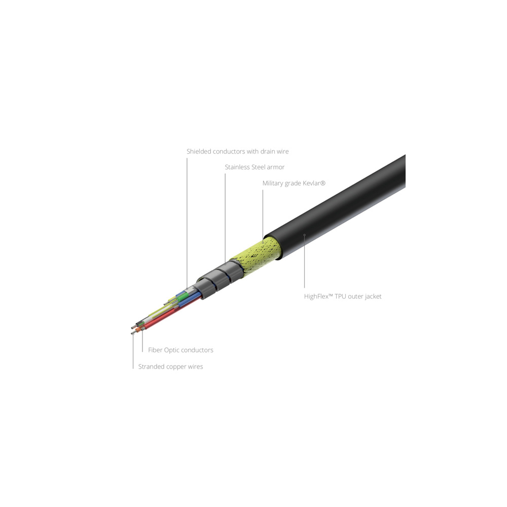Kabeln kombinerar en armering av rostfritt stål och Kevlar för att att skydda fibrerna. Trots armeringen är kabeln mycket flexibel och följsam. Armerad kabel i kombination med transportskydden för anslutningskontakterna och den tåliga vindan, gör kabeln väl anpassad för mobilt bruk / uthyrningshantering.