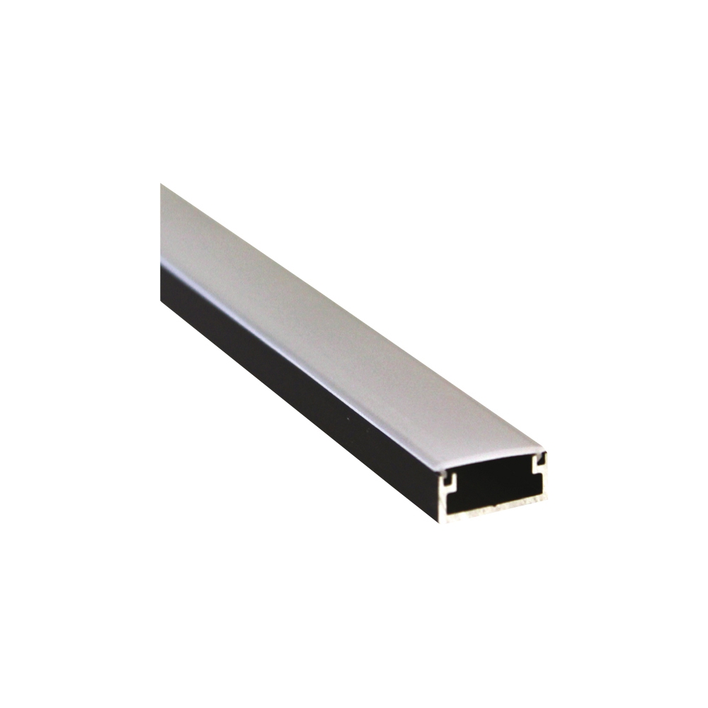 LeDux 2m svart aluminiumprofil i en slimmad storlek. Transparent täcklock medföljer som ger en spridning på c:a 30 grader. Täcklocket klickas lätt fast.