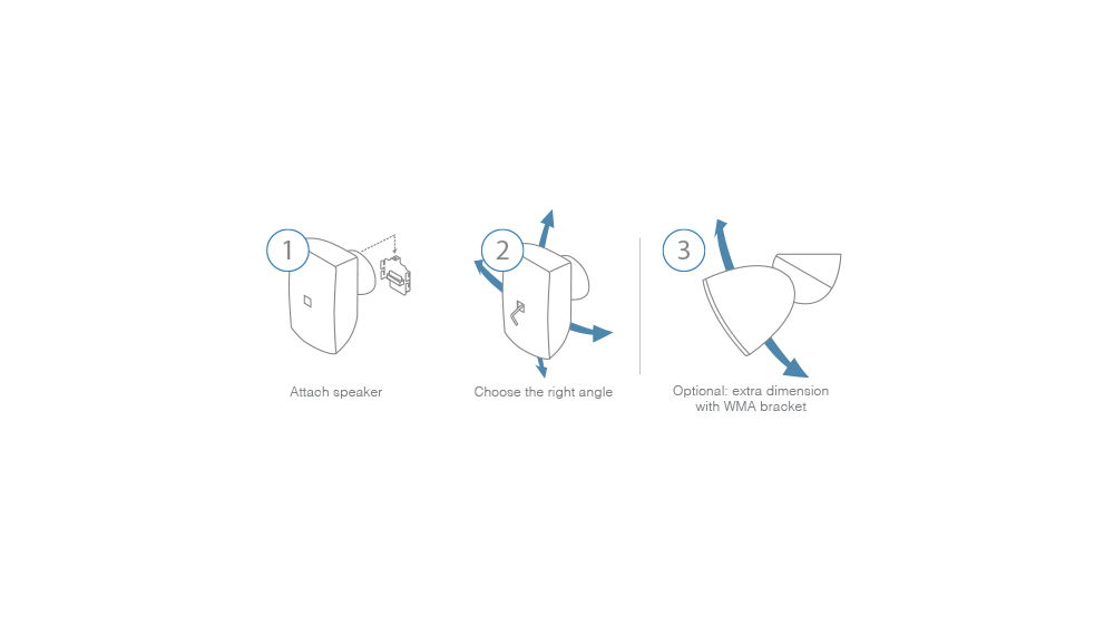 Det unika, tvådelade och patenterade väggfästet (Clevermount™) gör ATEO2 också till installatörens favorithögtalare. Väggfästet är tvådelat, där ena delen väggmonteras och högtalarkabeln fästs direkt i dess anslutningsterminal. Som tidsbesparing kan väggfästena monteras samtidigt som kabeldragningen. Högtalarna hängs på plats vid ljudddrift.