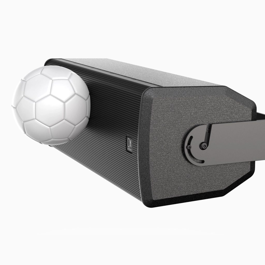 Högtalaren är också godkänd enligt DIN 18032-3:2023-12, för användning i bla. offentliga och kommersiella sport- & idrottshallar: VEXO208i är (i kombination med medföljande U-bygel) bolltålig, och ingen kostsam "bollbur" behöver användas.