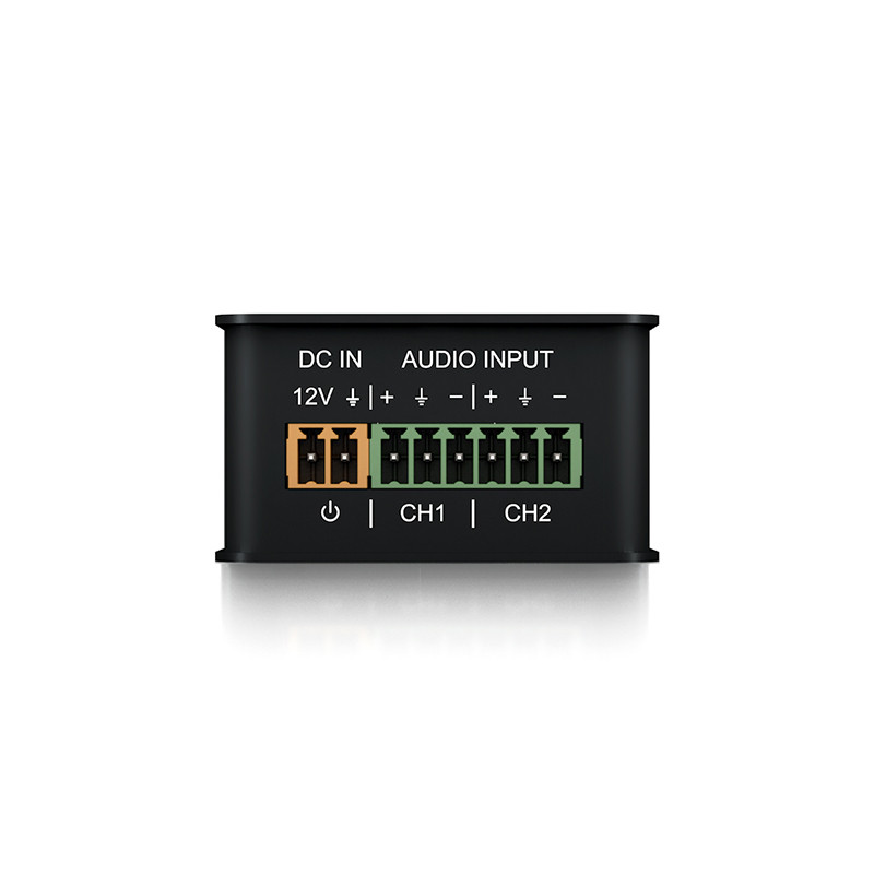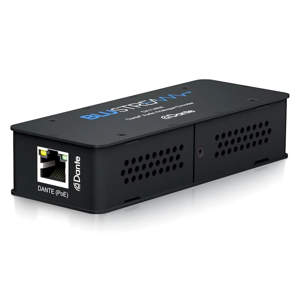 Blustream DA11AEN har designats för att konvertera två analoga ljudsignaler till nätverksbaserat Dante-ljud. Inkoppling görs obalanserat eller balanserat via installationsvänliga Euroblock-plintar. En riktig plug & play-enhet som drivs med antingen PoE (Power over Ethernet) nätverket eller via lokal 12V strömförsörjning (tillval).