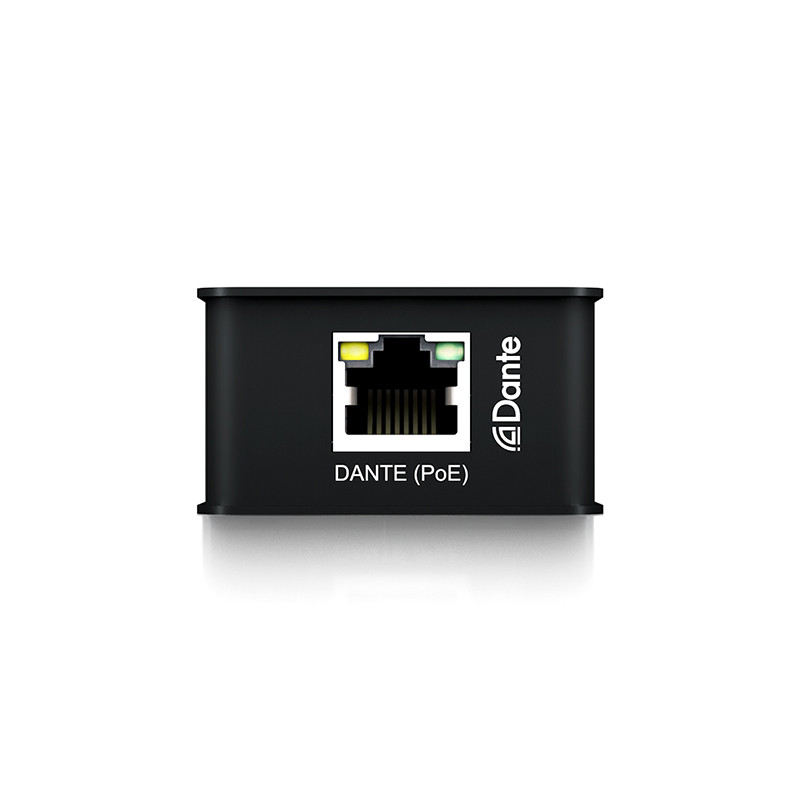 - 2-kanaligt analogt ljud (obalanserat eller balanserat) till 2 ch Dante digitalt ljud