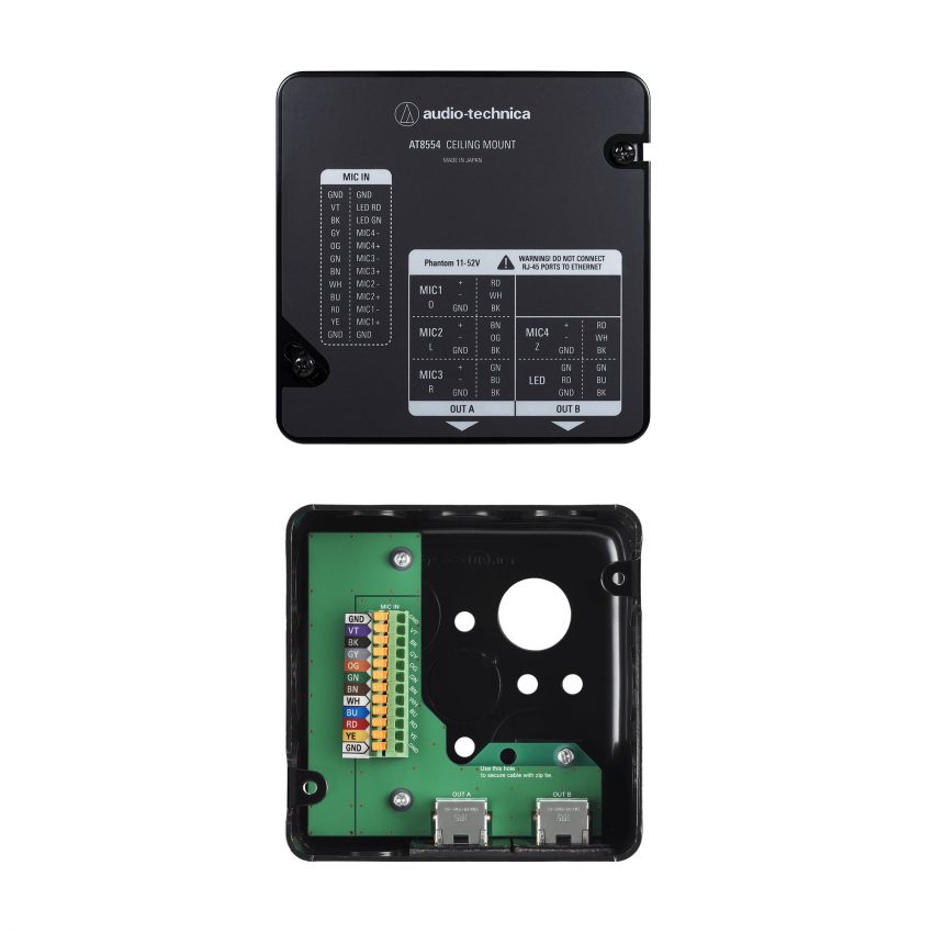 ES954 levereras med AT8554 takfäste med kabelanslutningar av RJ45-typ för enkel och säker installation. Mikrofonen har en fast monterad 3m kabel med en låsbar genomföring för enkel höjdjustering och dess UniGuard® RFI-skärmningsteknik ger enastående avvisning av radiofrekvensstörningar (RFI).