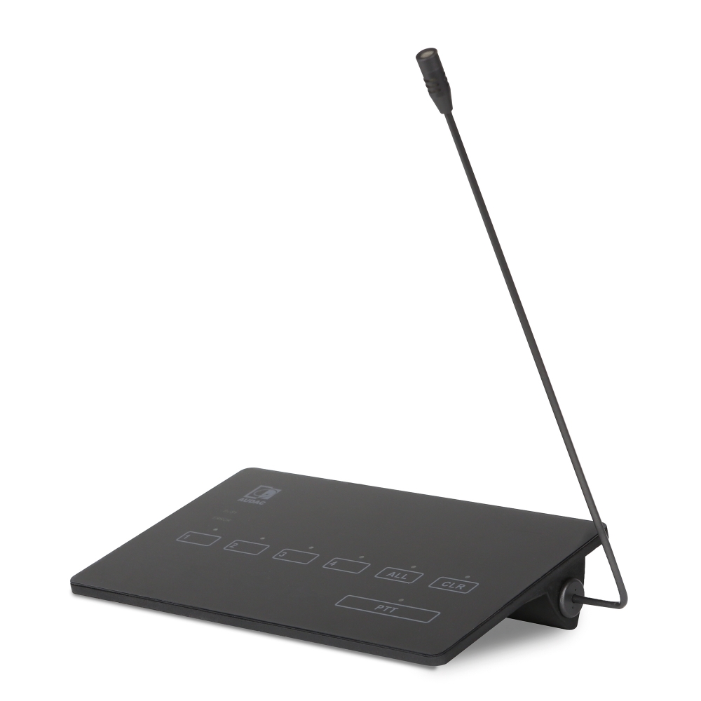 Konstruktionen är gjord av ABS med touchpanel, för bordsplacering. Det finns en knapp för utrop i valfri zon / zoner, eller "all-knappen" där utropet går till alla zoner. Den separata push-to-talk-knappen (PTT) har en integrerad telegongsignal som hörs innan offentliggörandet.
