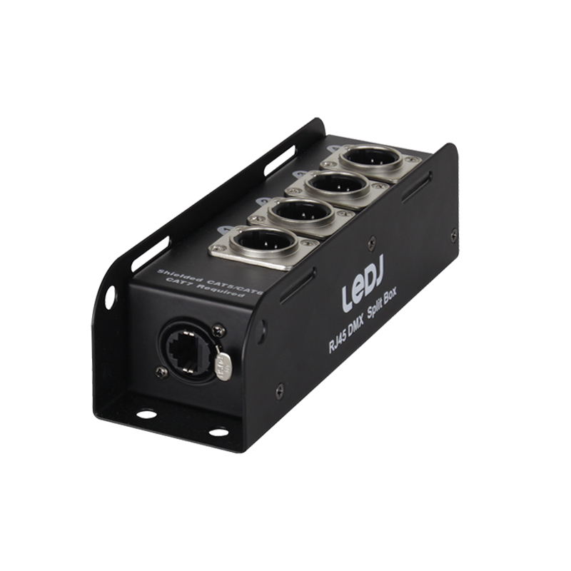 4-kanals Kontaktbox / stagebox för upp till fyra DMX-universum i en nätverkskabel. Skall endast kombineras med skärmad CAT5/6/7-kabel. Metallchassi med skruvhål för fast montering och öglor för kardborreband.