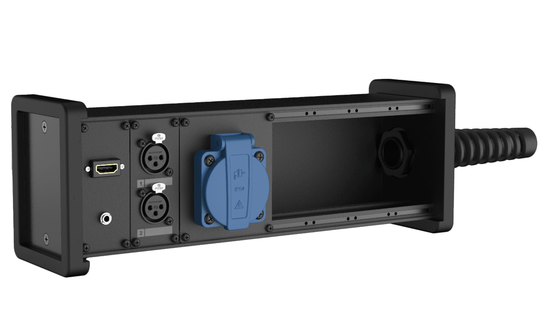Den medföljande kabelavlastningen på boxen kan avlägsnas, och lämnar en förberedd öppning för D-Size kontakter. På så sätt kan stageboxen användas som en tålig breakout-box som enkelt kan specificeras efter behov och ändamål, med valfri kabellängd. Boxen är tom, och skall kombineras med CASYs lödfria kontaktpaneler (max 8st) för ljud-, ljus-, video, nätverk- eller strömdistribution.