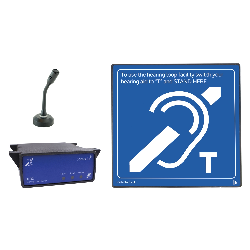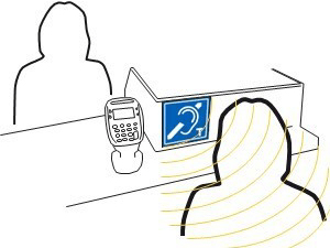 - Personal-mikrofon, förstärkare, kombinerad hörslinga/skylt
