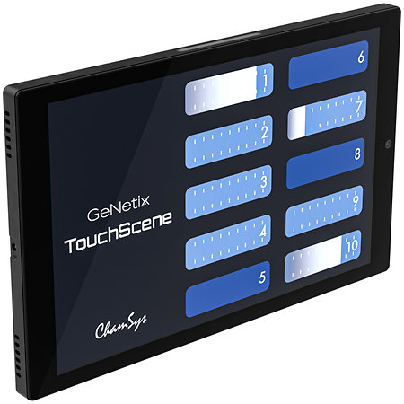 GeNetix TouchScene MINI är en 8 tum touchpanel för att remote- & fjärrstyra färdiga scener & sekvenser från bl.a Chamsys-bord och styrenheter, men också för flertalet GeNetix-noder.