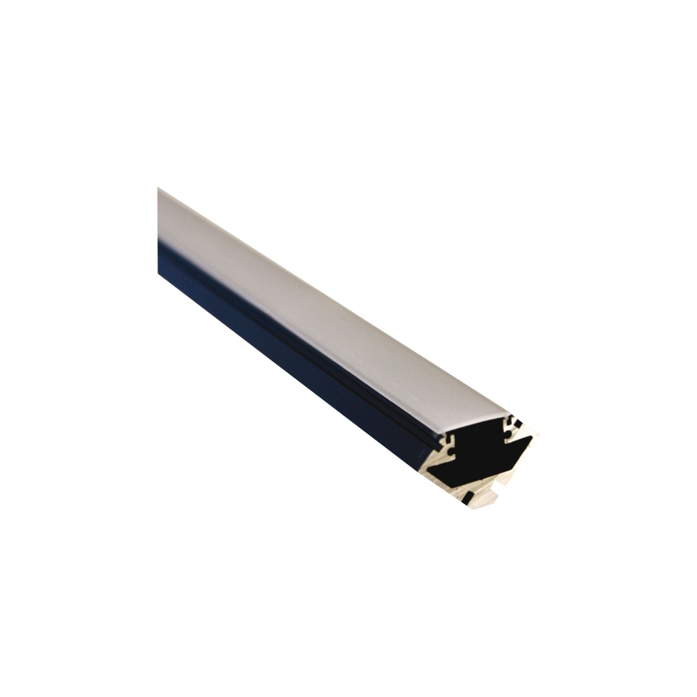LeDux 2m svart aluminiumprofil för 45 graders hörnmontering. Transparent täcklock medföljer som ger en spridning på c:a 30 grader. Täcklocket klickas lätt fast.