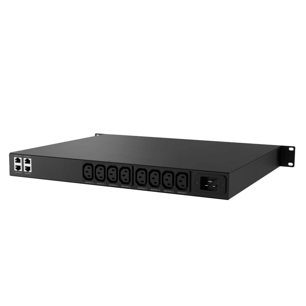 Caymon PSQ108 är en styrbar PDU med åtta styrbara (IEC) C13 utgångar: Styrbar via Audac Touch (web interface / app), via TCP/IP eller via RS-232. Enheten har dessutom knappar på fronten för manuell kontroll.