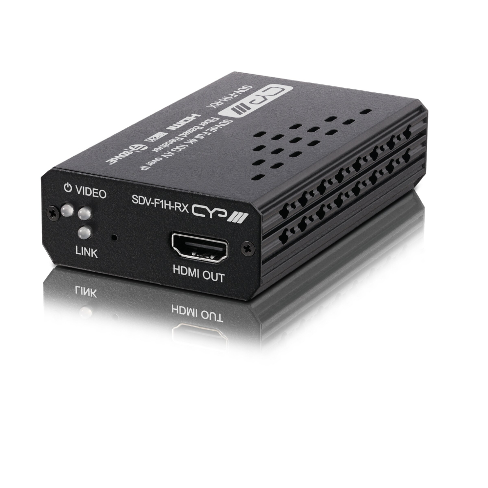 SDV-F1H-RX tillhör en nyutvecklad serie sändare och mottagare med SDVoE teknologi, men i ett kompakt (small factor format) chassi utan KVM-lösningar eller andra styrprotokoll. Passar i ett SDVoE system där endast högupplöst, latency-fri och okomprimead HDMI bildsignal behöver överföras.