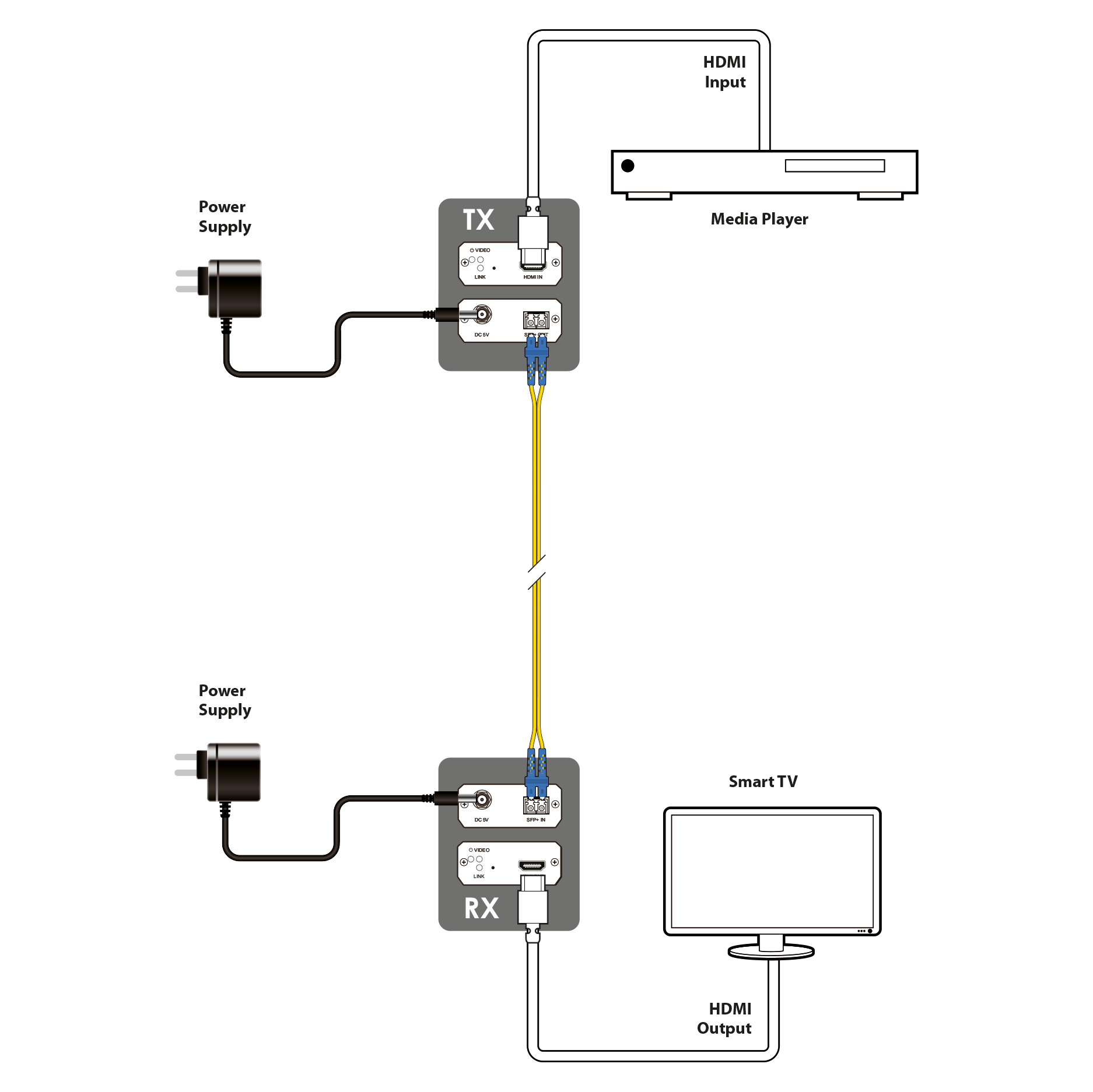 - 4K60 Extension up to 120km by replacing supplied SFP+ module(maximum distance depends on the SFP+ module and type of fiber used)